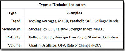 व्यापारी विभिन्न प्रकार के संकेतकों का उपयोग करते हैं, उनमें से कुछ स्व-विकसित भी हैं। इन सभी संकेतकों को उनके प्रभाव के आधार पर एक निश्चित श्रेणी में जोड़ा जाता है। इसमें शामिल हैं: