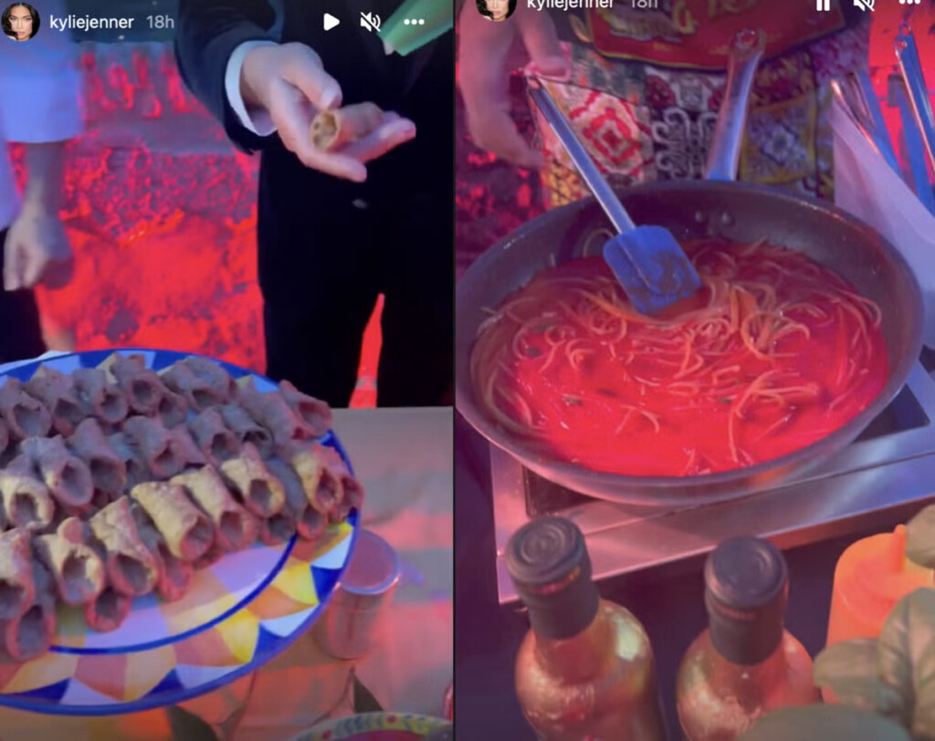 The reception menu featured trofie pasta with pesto, potatoes, and beans, a flavorful and hearty dish that highlights the versatility of vegan ingredients. Kourtney’s enthusiastic spoonful from the pan suggests her enjoyment of the combination. In addition to the pasta, the menu included oven-baked “fish” with potatoes and olives. However, this dish was prepared using vegan substitutes to create the same taste and texture as traditional sea bass, ensuring that the entire menu remained plant-based.